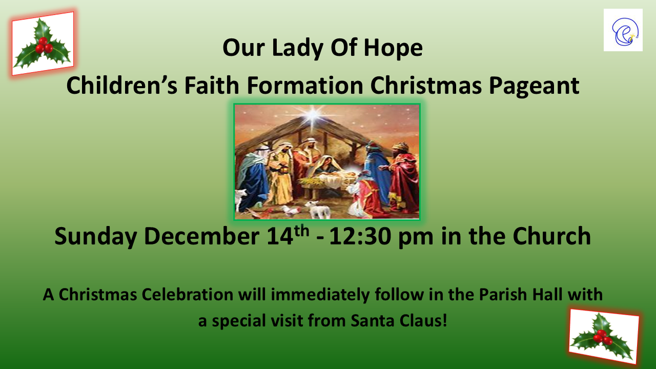 Our Lady of Hope is a worshiping and welcoming parish community serving the Kingdom of God.